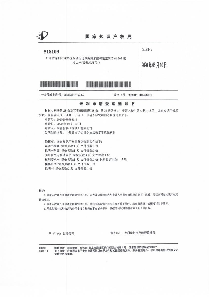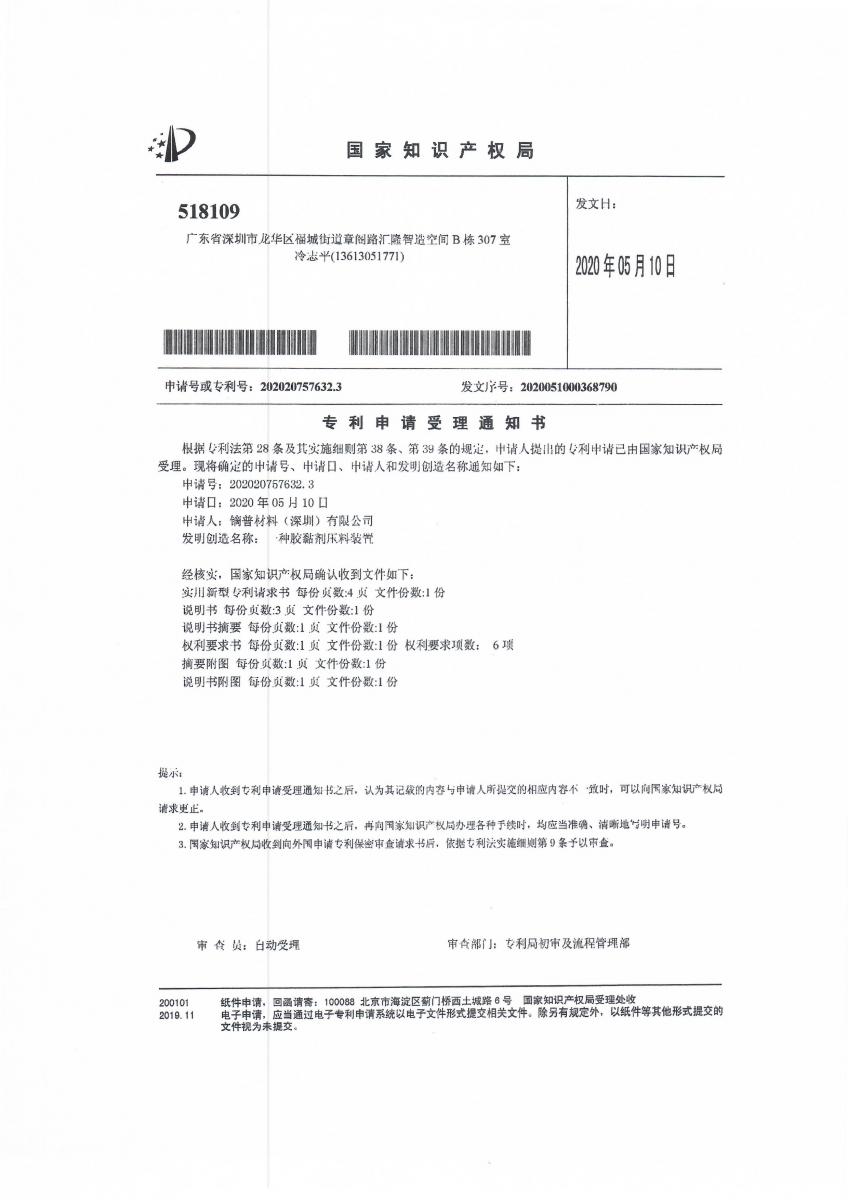 鏑普材料擁有膠粘劑和保護(hù)膜研發(fā)人員十多名,其中博士研究生和碩士研究生4人,國內(nèi)知名高校高分子和化工行業(yè)本科畢業(yè)生8人,擁有深圳和江西兩地實驗室四間,其中膠粘劑開發(fā)實驗室一間,分析與檢驗實驗室一間;保護(hù)膜研發(fā)實驗室一間,分析與檢驗實驗室一間。公司在深圳觀瀾高新園有膠粘劑生產(chǎn)基地,并在江西省貴溪市建設(shè)56畝工業(yè)園生產(chǎn)保護(hù)膜和電子膠粘劑。公司每年均有十項以上發(fā)明專利,二十項左右實用新型專利發(fā)布。